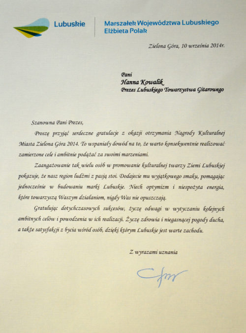 10 września 2014 Udostępnij Share on FacebookShare on Facebook Share on XShare on X Share on WhatsAppShare on WhatsApp Nawigacja wpisówPoprzedniePoprzedni wpis:Marek Pasieczny – Koncert – Portret PodwójnyNastępneNastępny wpis:XII Międzynarodowy Festiwal Gitarowy 5-8 maja 2016