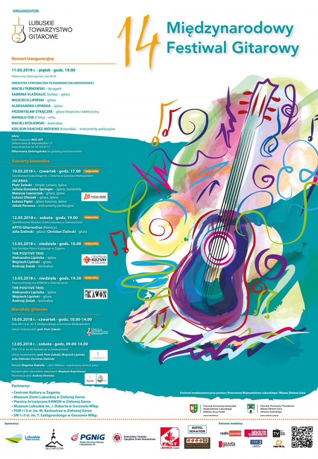 10.05.2018, czwartek – Gorzów Wielkopolski Godz.10.00-14.00 – Szkoła Muzyczna I i II st. im T.Szeligowskiego Warsztaty gitarowe: prof. Piotr Zaleski Godz.17.00 – Sala Muzeum Lubuskiego im. J.Dekerta w Gorzowie Wlkp. Koncert kameralny: zespół „Jacaras” 11.05.2018, piątek – Zielona Góra Godz.19.00 – sala Filharmonii Zielonogórskiej Koncert inauguracyjny: Orkiestra Symfoniczna Filharmonii Zielonogórskiej im. T.Bairda Maciej Tarnowski –…