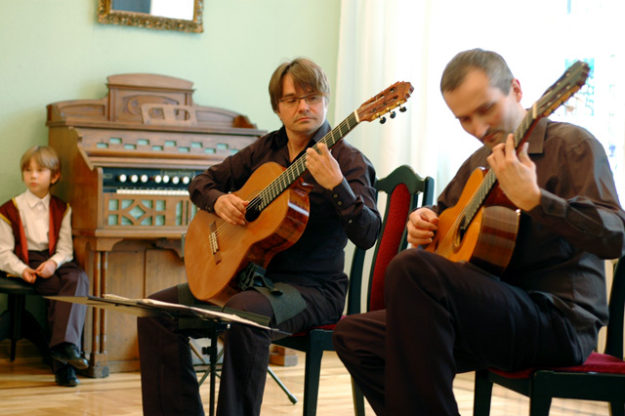Koncert duetu gitarowego „Kris & Yarema Duo” w Muzeum Miejskim w Nowej Soli. Wykonawcy: Krzysztof Pełech – gitara, Jarema Klich – gitara, Elżbieta Cichocka – prowadzenie koncertu